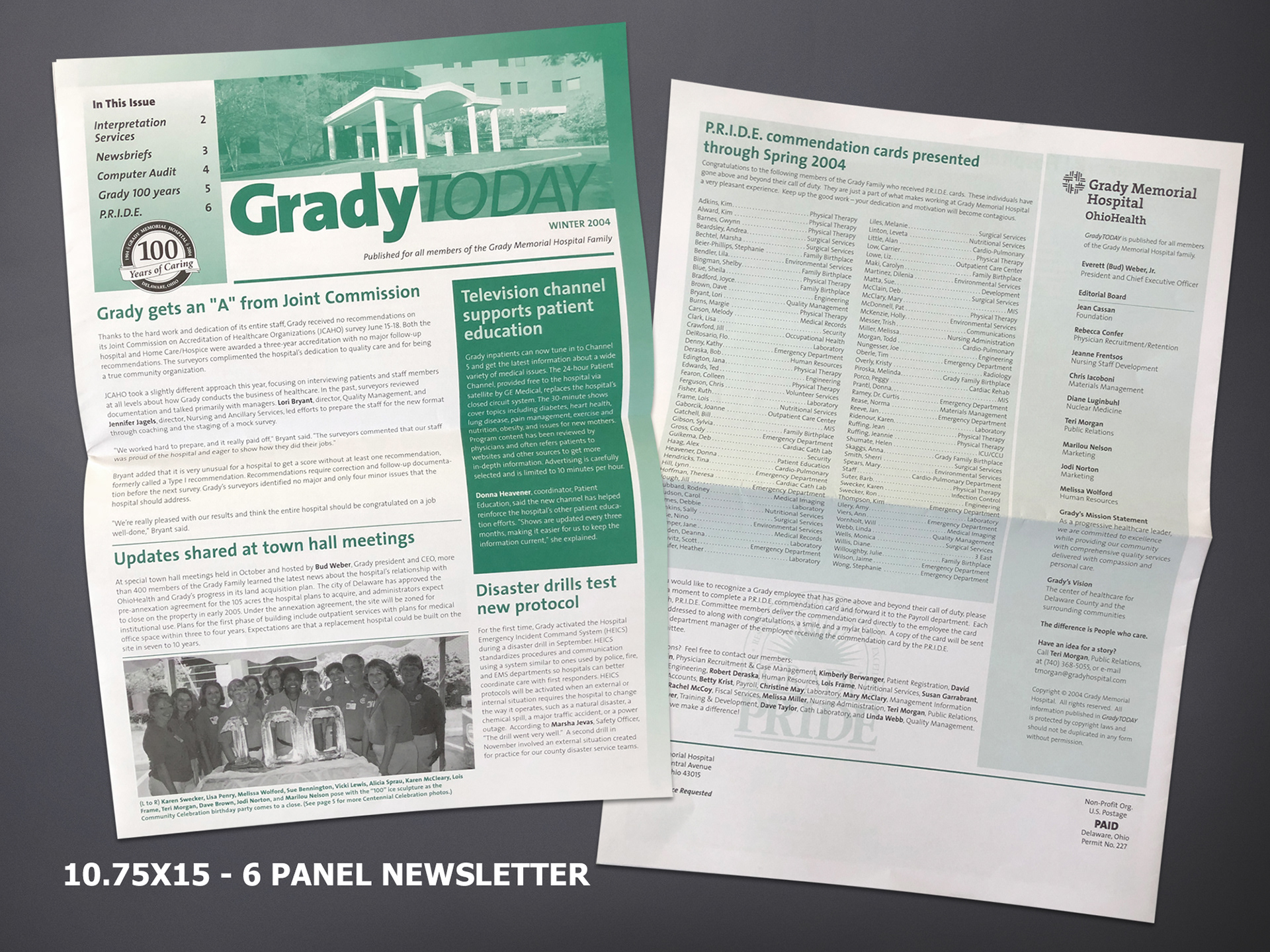 I've worked on OhioHealth Newsletters over the years. Above is an example one of the OhioHealth Grady Memorial Hospital Newsletters I used to work on.